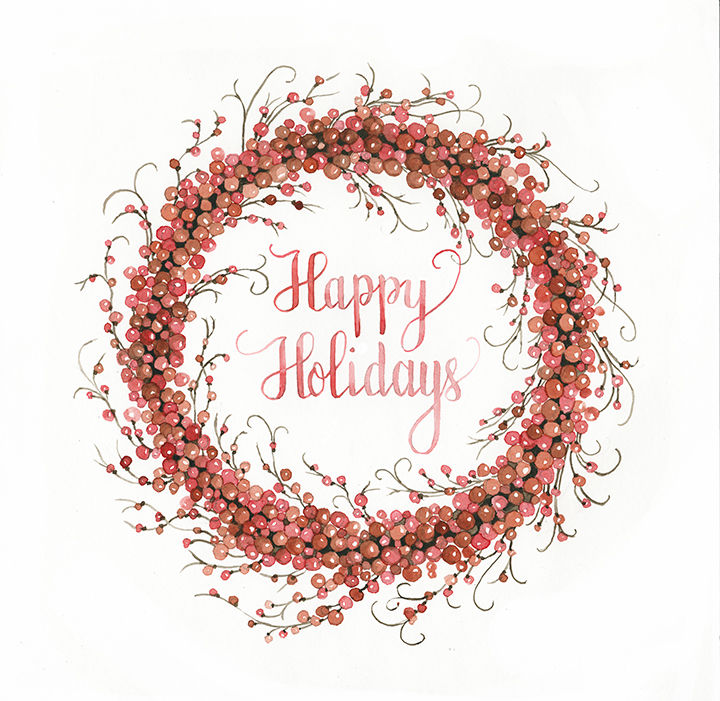 "Wreath Red Berries & Sage Leaves: Season's Greetings"